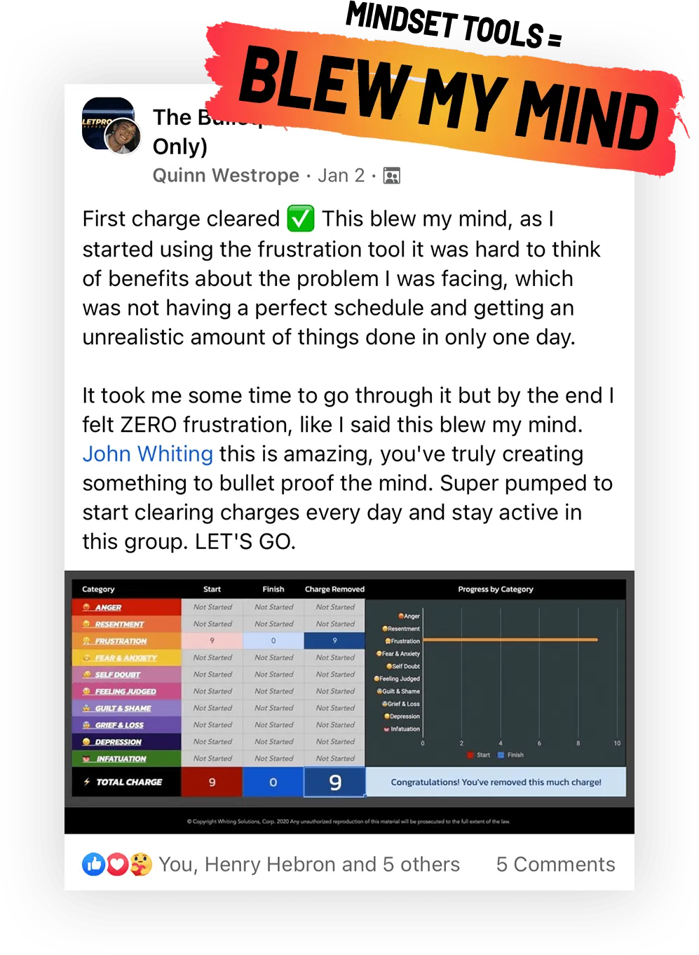 During the study, we focused solely on removing mental blocks, fears, doubts & frustrations using our charge clearing system. We did not focus on any "business tactics or strategies".